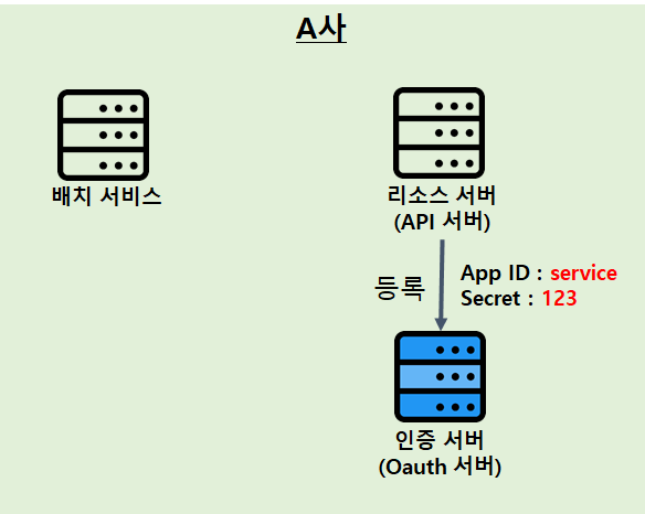 리소스 서버는 고유 ID(App ID)와 Secret을 가지고 있으며 이를 이용하여 인증 서버에 등록합니다.
