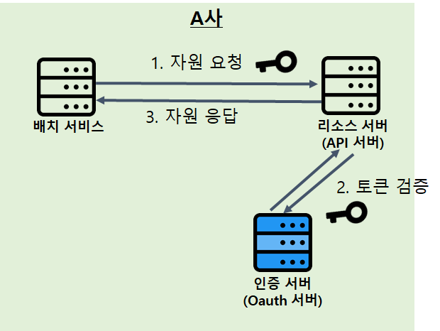 또한, 배치 서비스에게 자원을 제공하는 리소스 서버와 인증을 관리하기 위한 인증서버와 리소스 소유자가 존재합니다.
