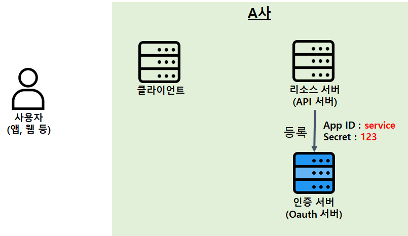 리소스 서버는 고유 ID(App ID)와 Secret을 가지고 있으며 이를 이용하여 인증 서버에 등록합니다.
